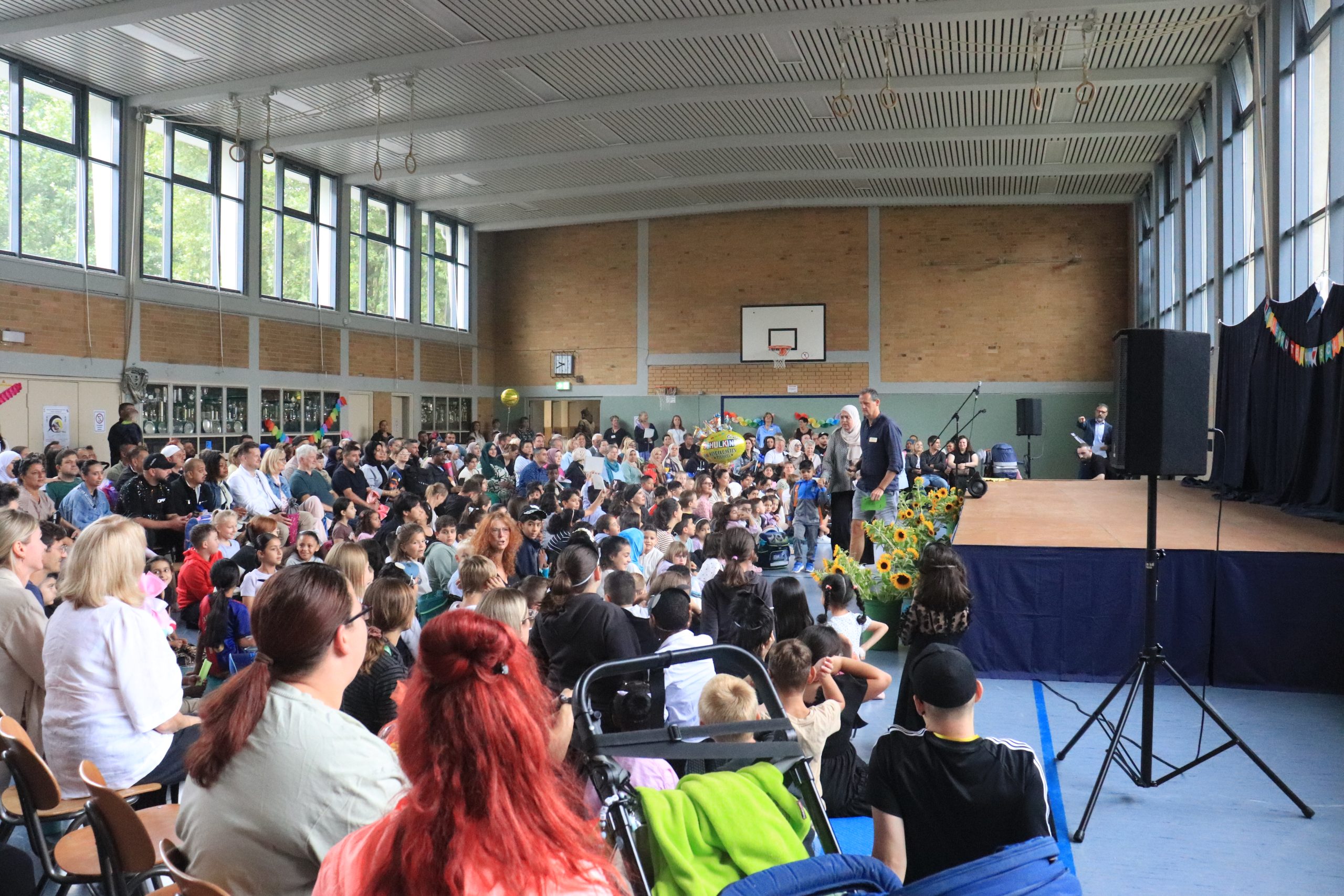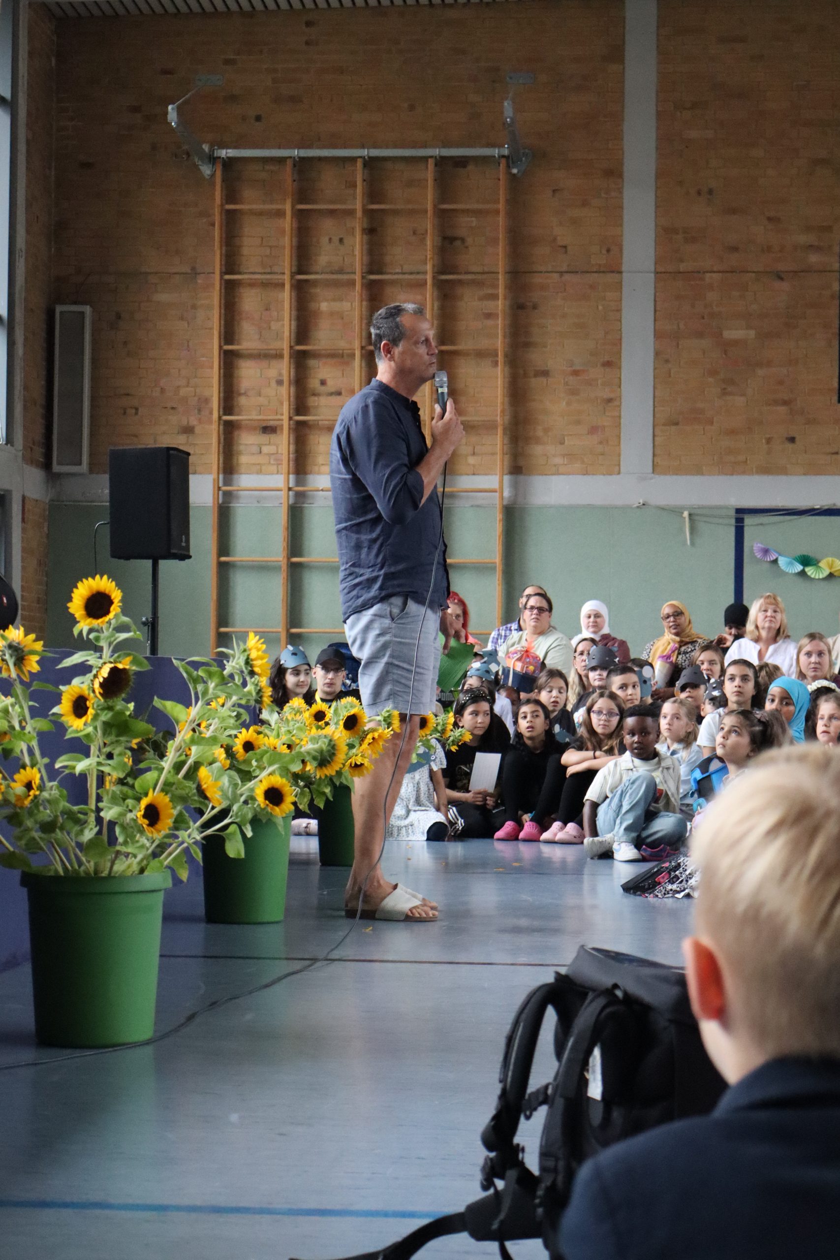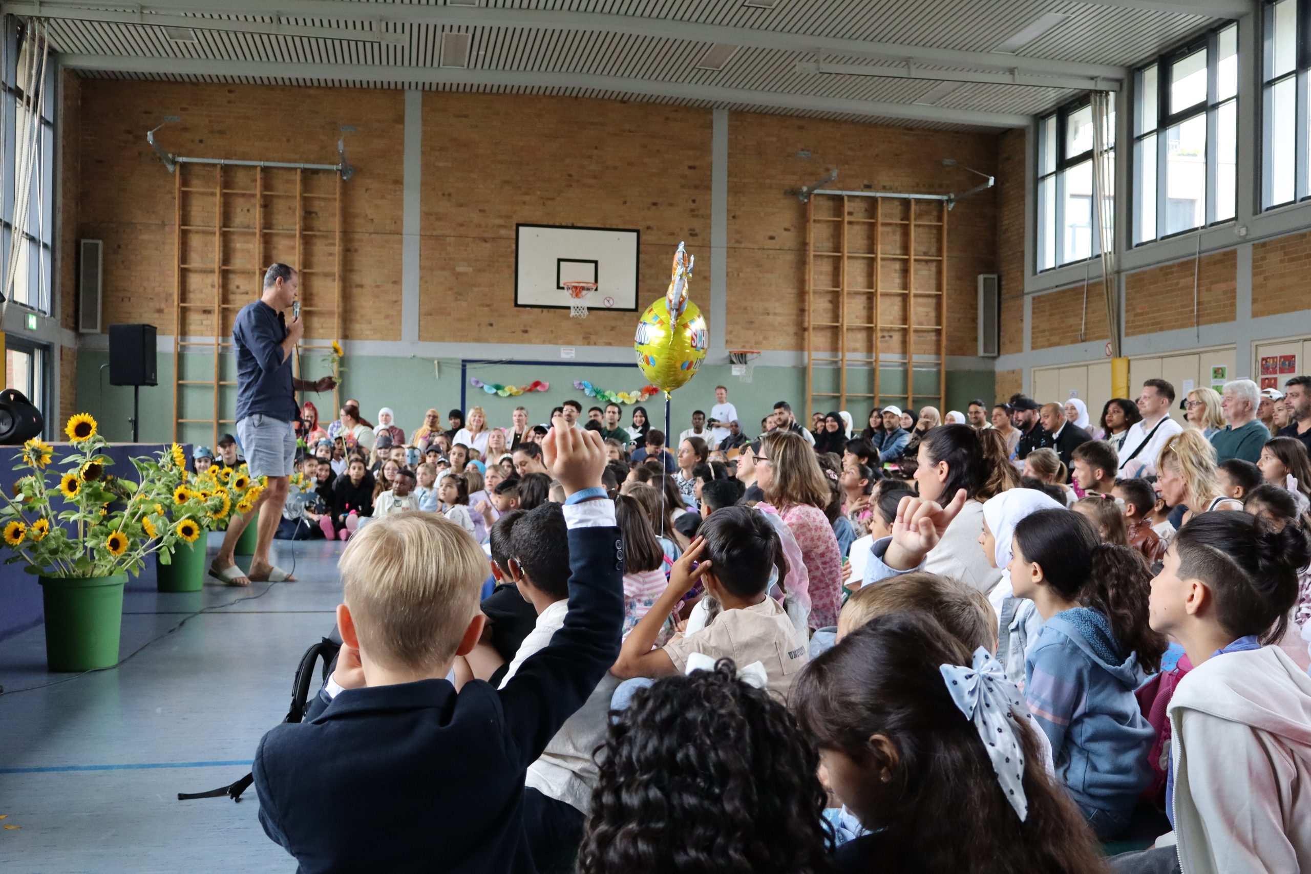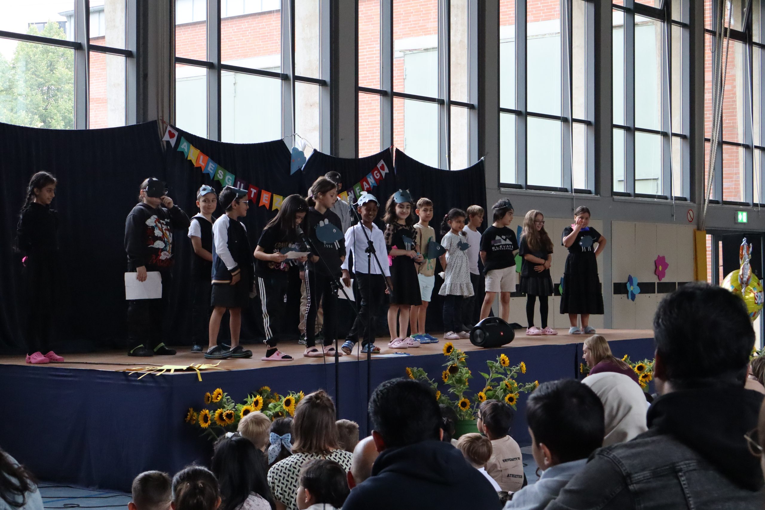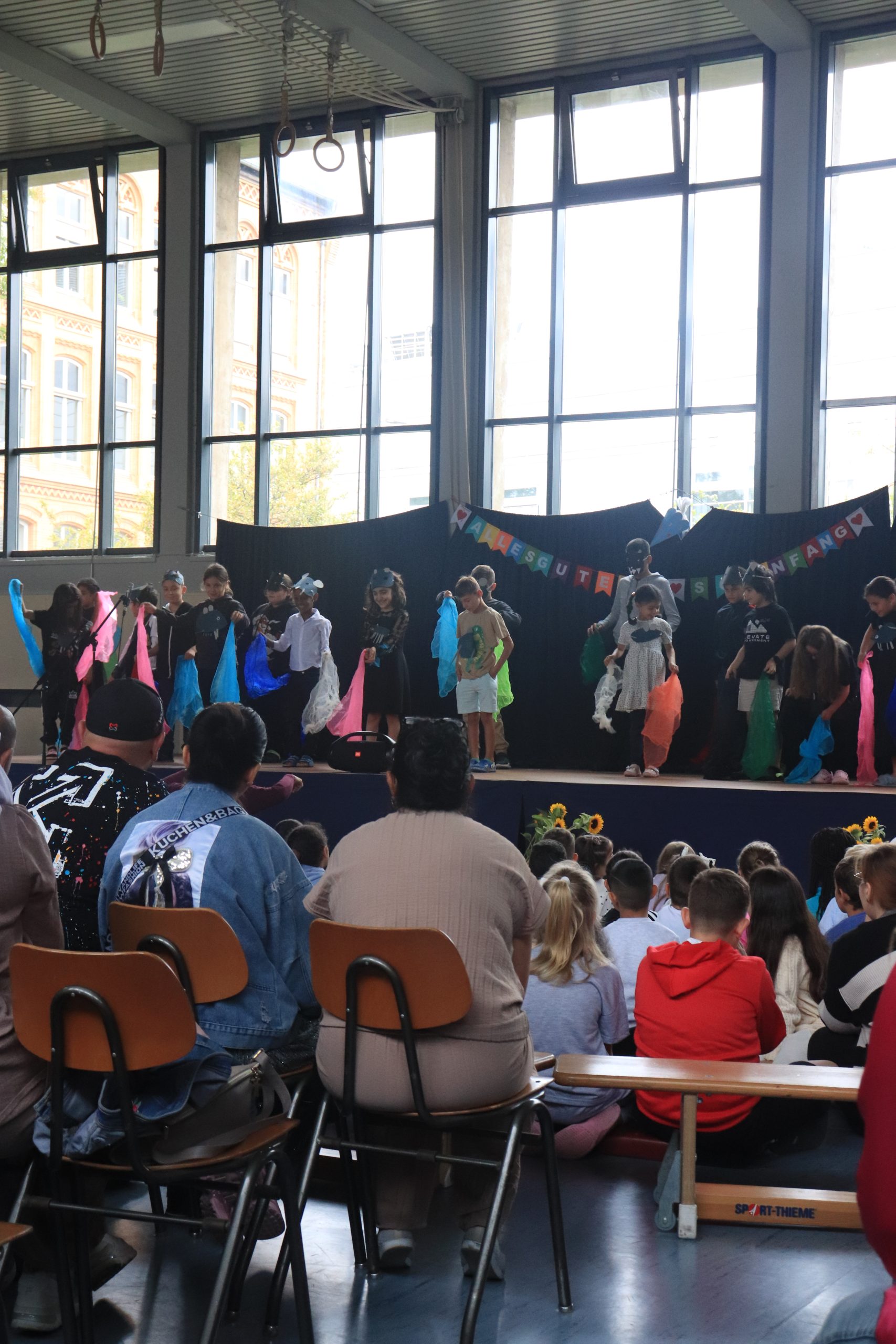 Am 20.08.2025 hat die Einschulung der neuen Erstklässlerinnen und Erstklässler in unserer Turnhalle stattgefunden. Die Luchseklasse hat ein kleines Theaterstück zu „Frederick“ von Leo Lionni aufgeführt. Mit diesem Bilderbuch beschäftigen sich alle Klassen der Schule Am Wall in den ersten zwei Wochen nach den Sommerferien und heißen die neuen Kinder der Schule damit herzlich willkommen.