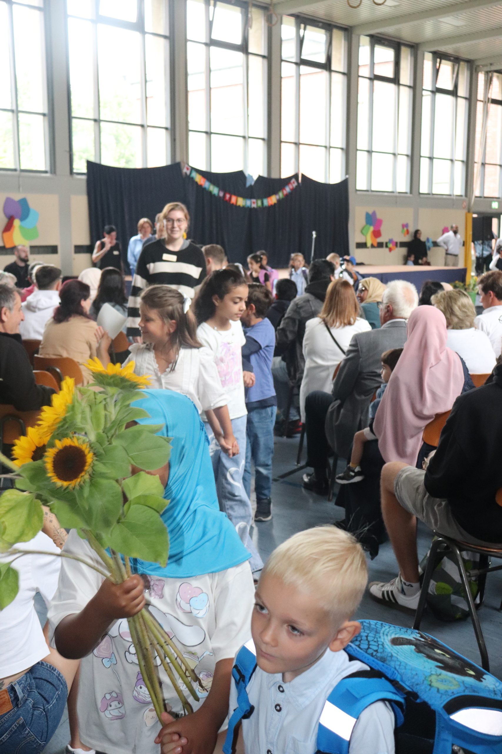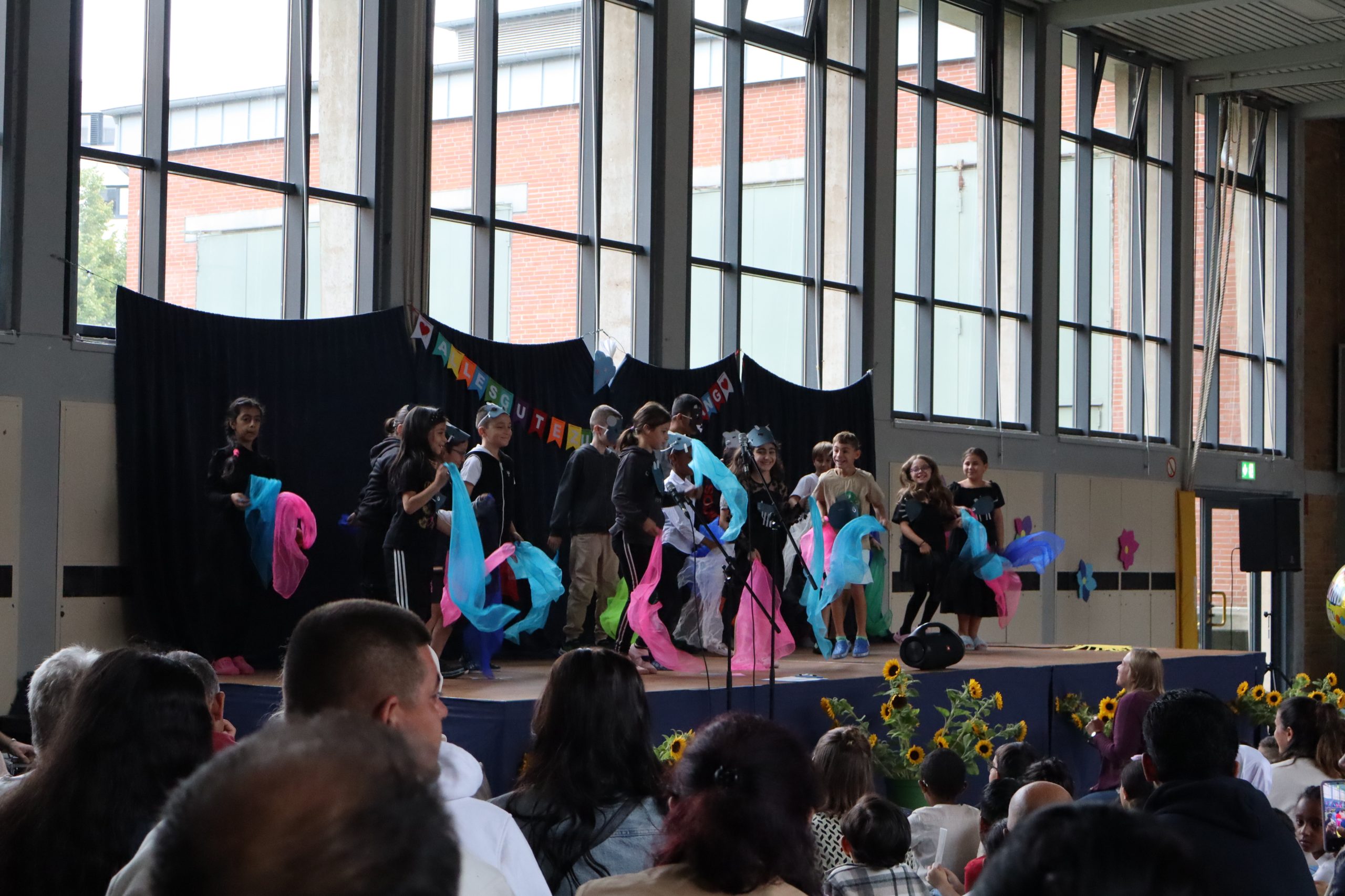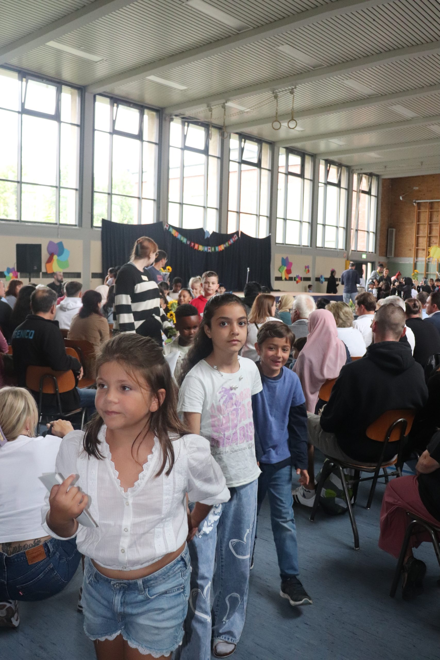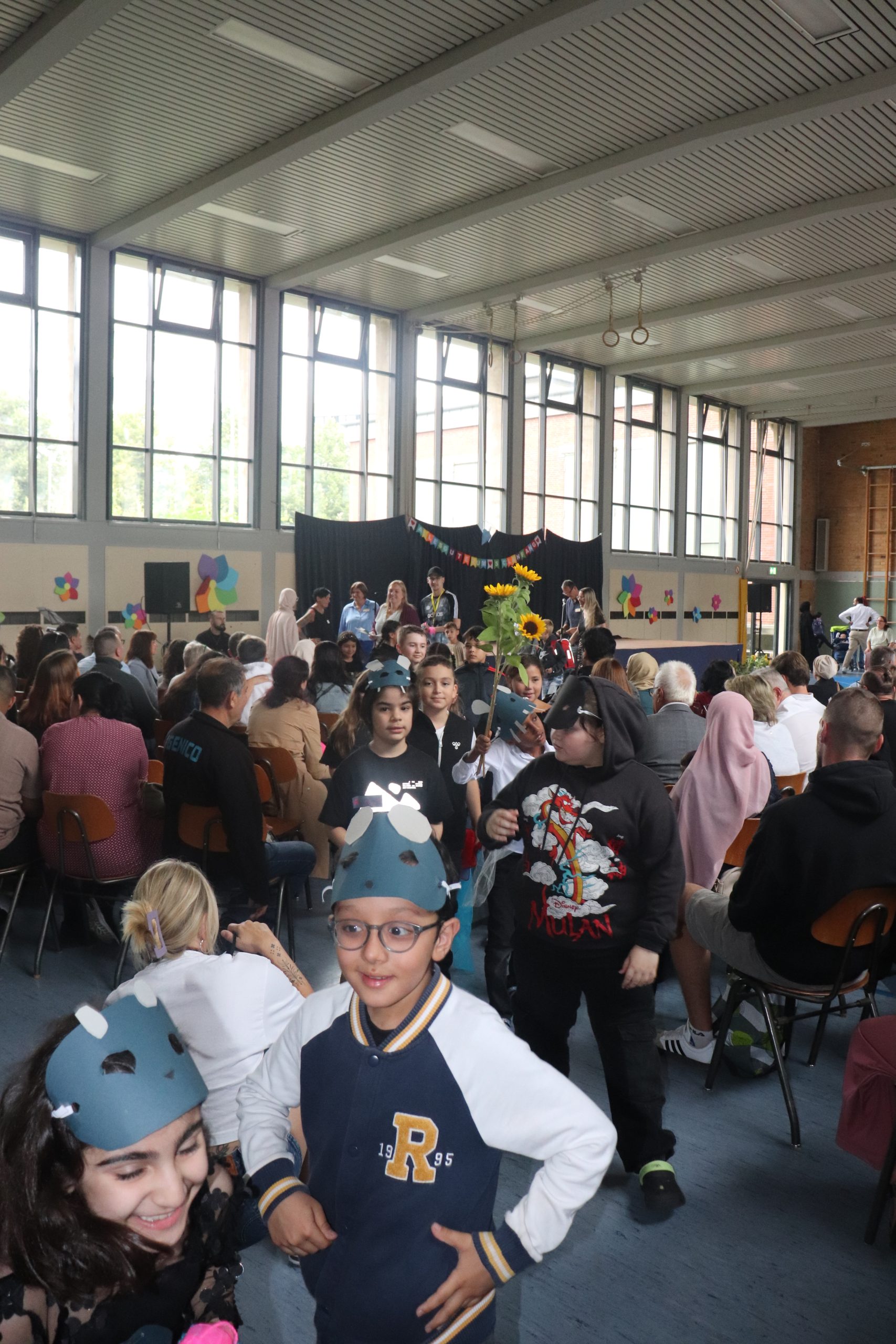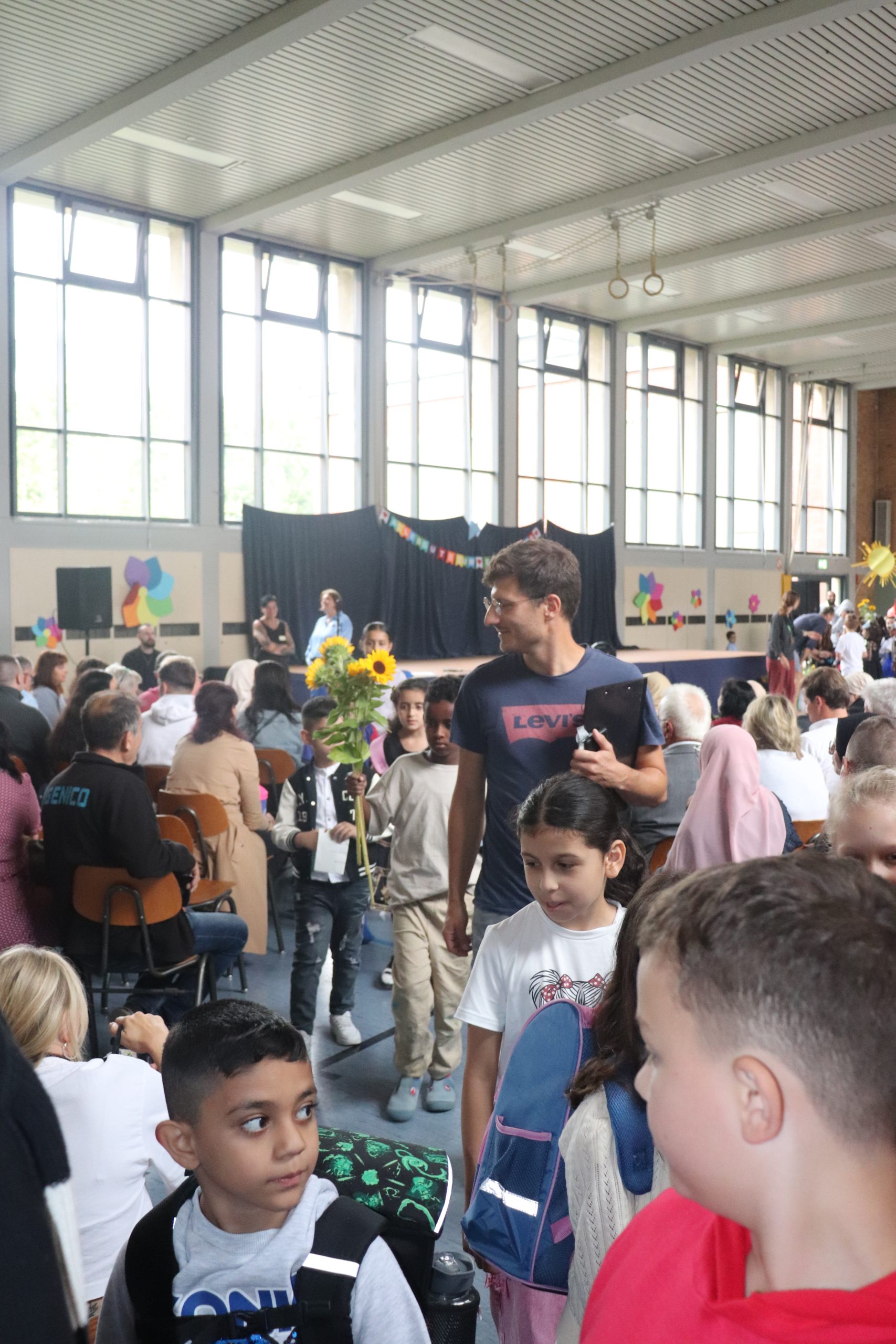 Am 20.08.2025 hat die Einschulung der neuen Erstklässlerinnen und Erstklässler in unserer Turnhalle stattgefunden. Die Luchseklasse hat ein kleines Theaterstück zu „Frederick“ von Leo Lionni aufgeführt. Mit diesem Bilderbuch beschäftigen sich alle Klassen der Schule Am Wall in den ersten zwei Wochen nach den Sommerferien und heißen die neuen Kinder der Schule damit herzlich willkommen.