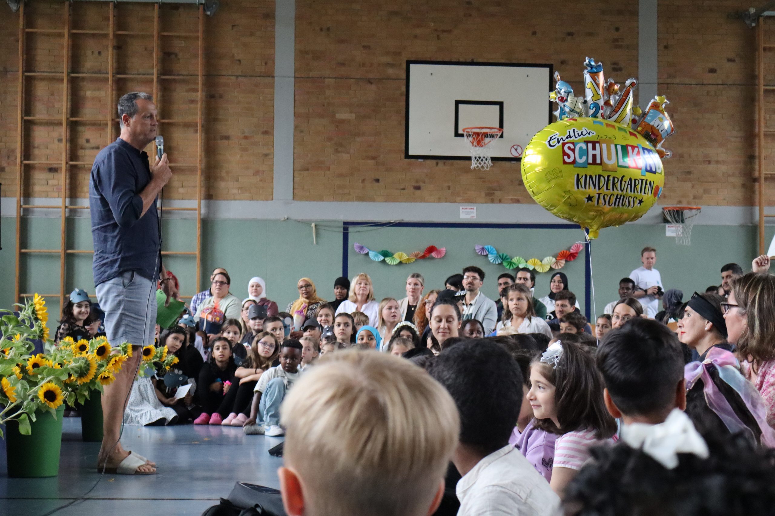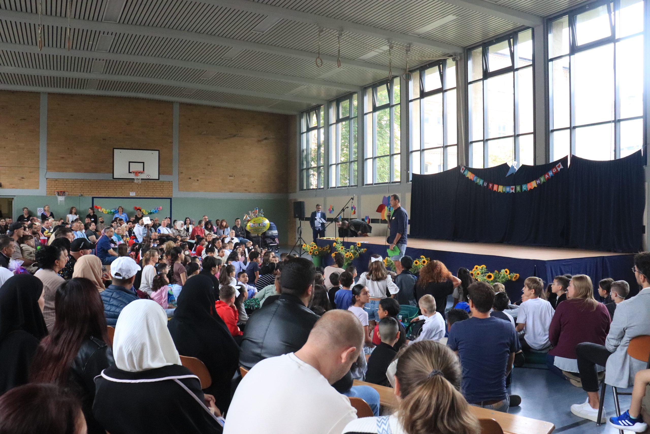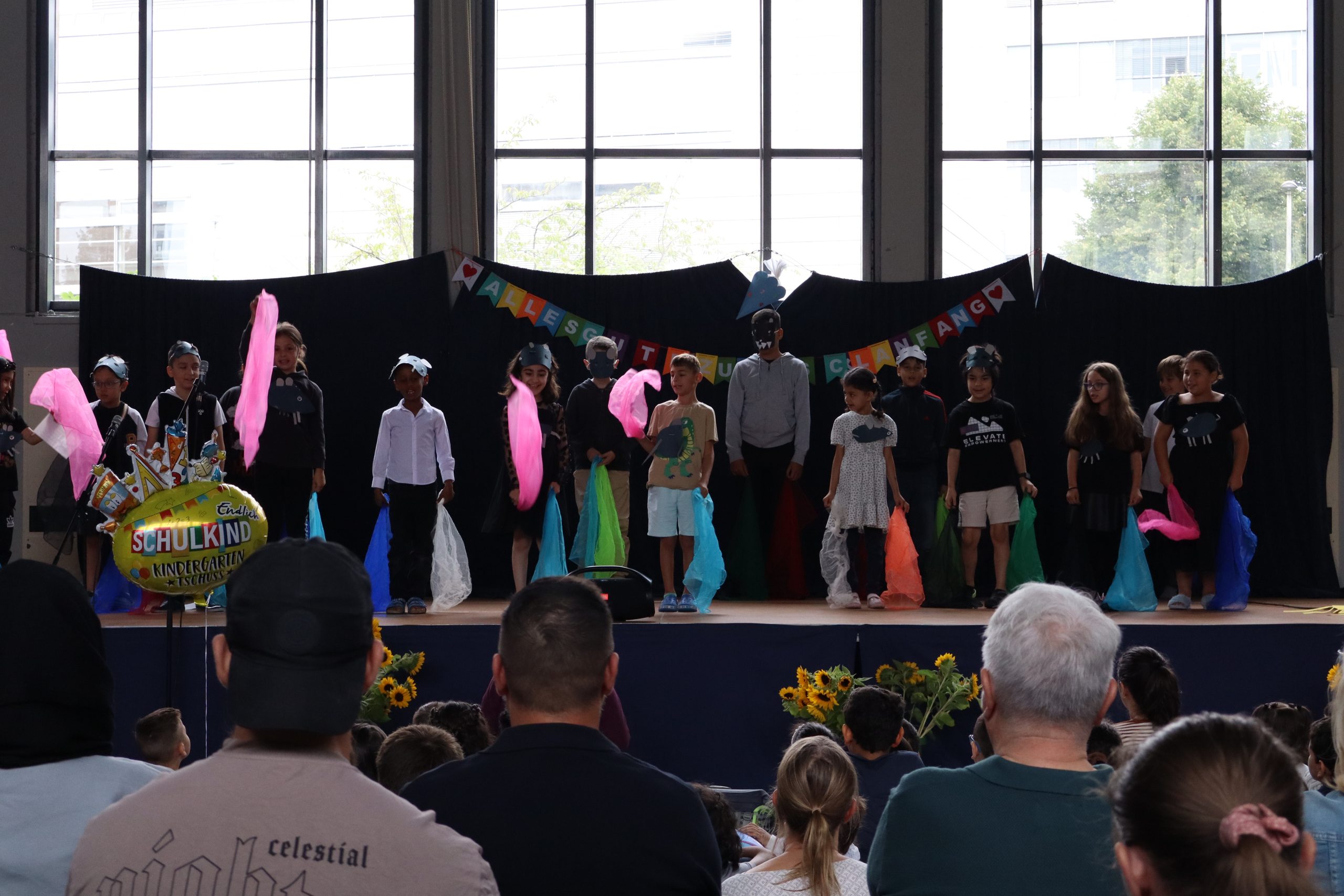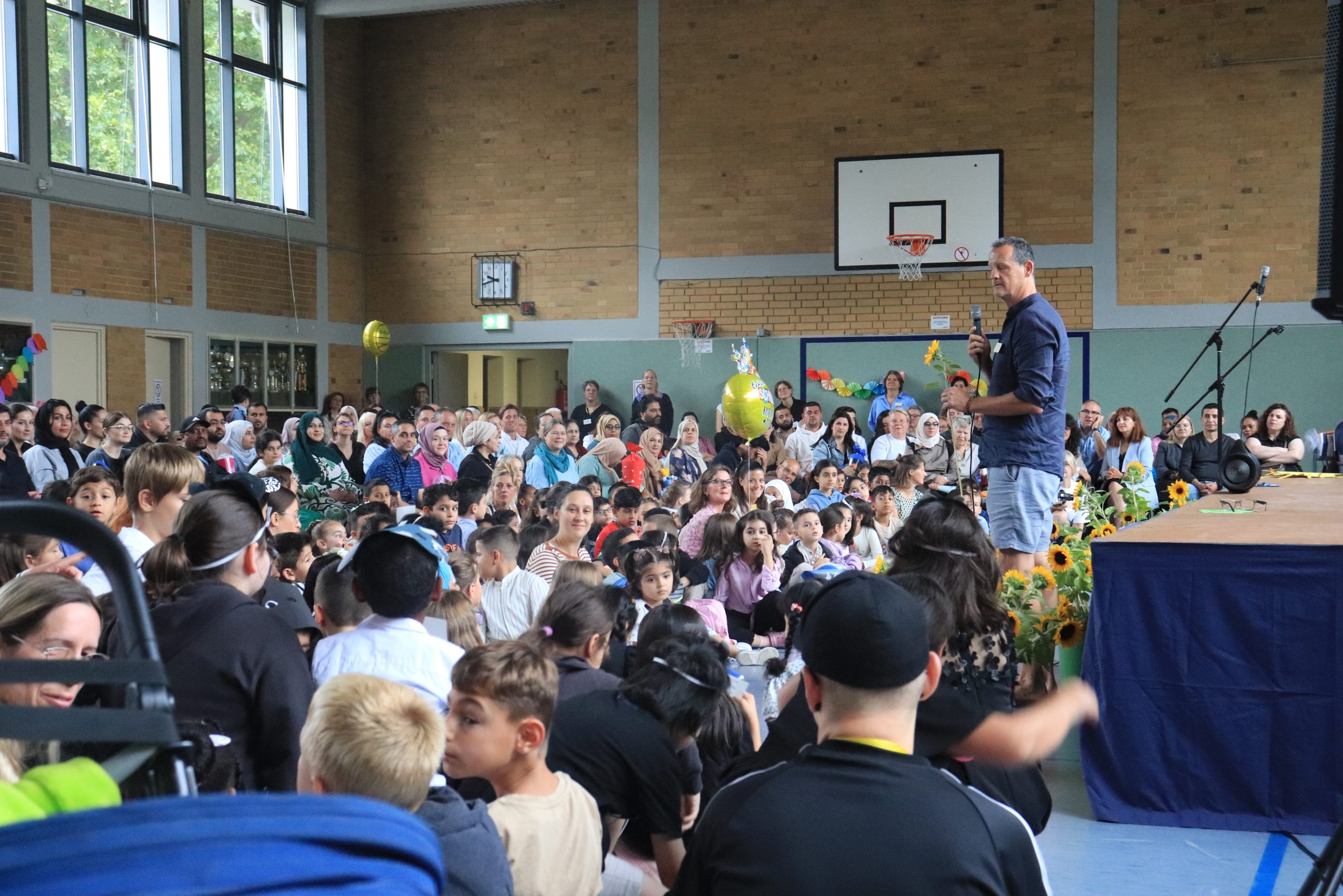 Am 20.08.2025 hat die Einschulung der neuen Erstklässlerinnen und Erstklässler in unserer Turnhalle stattgefunden. Die Luchseklasse hat ein kleines Theaterstück zu „Frederick“ von Leo Lionni aufgeführt. Mit diesem Bilderbuch beschäftigen sich alle Klassen der Schule Am Wall in den ersten zwei Wochen nach den Sommerferien und heißen die neuen Kinder der Schule damit herzlich willkommen.