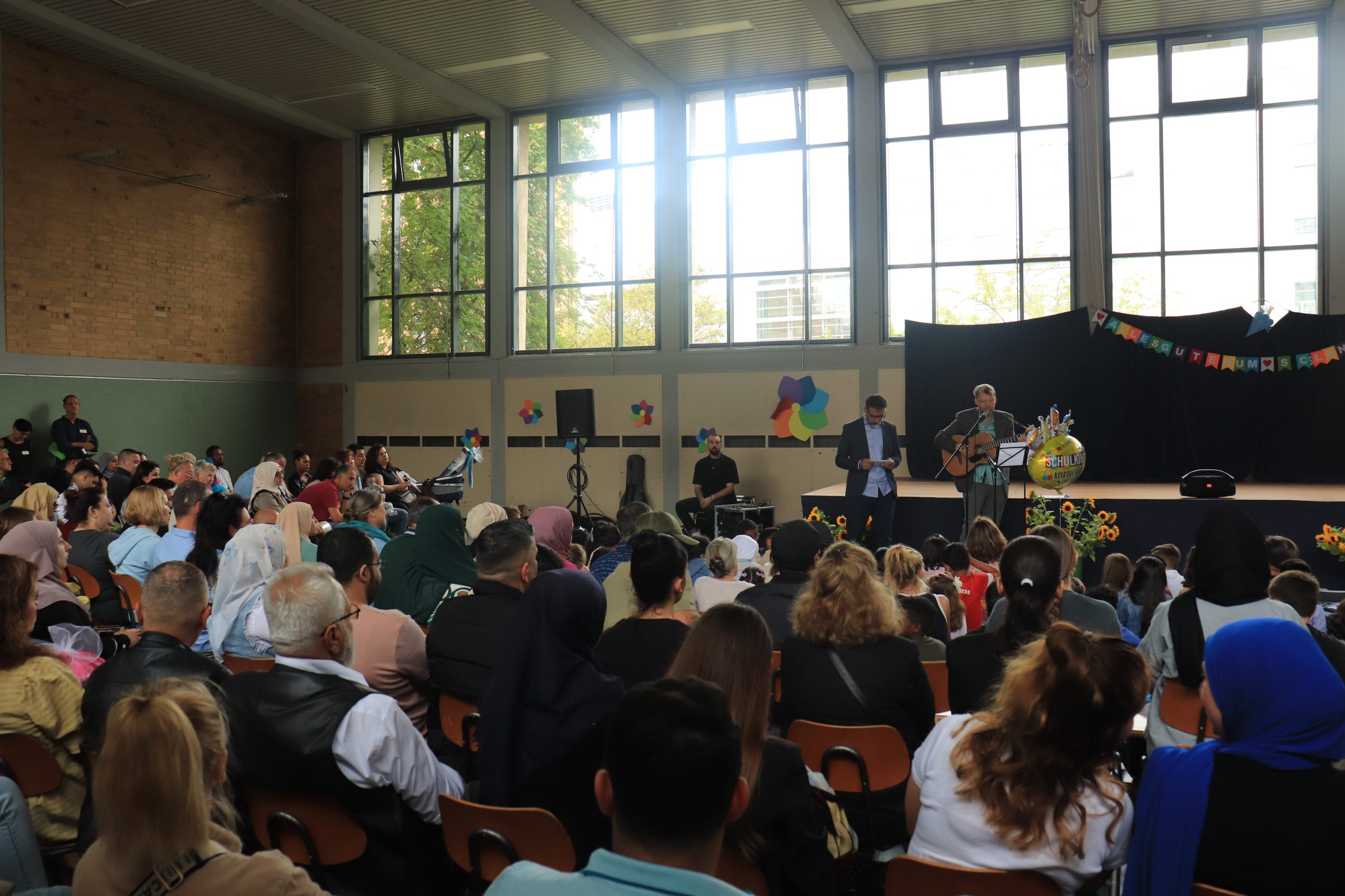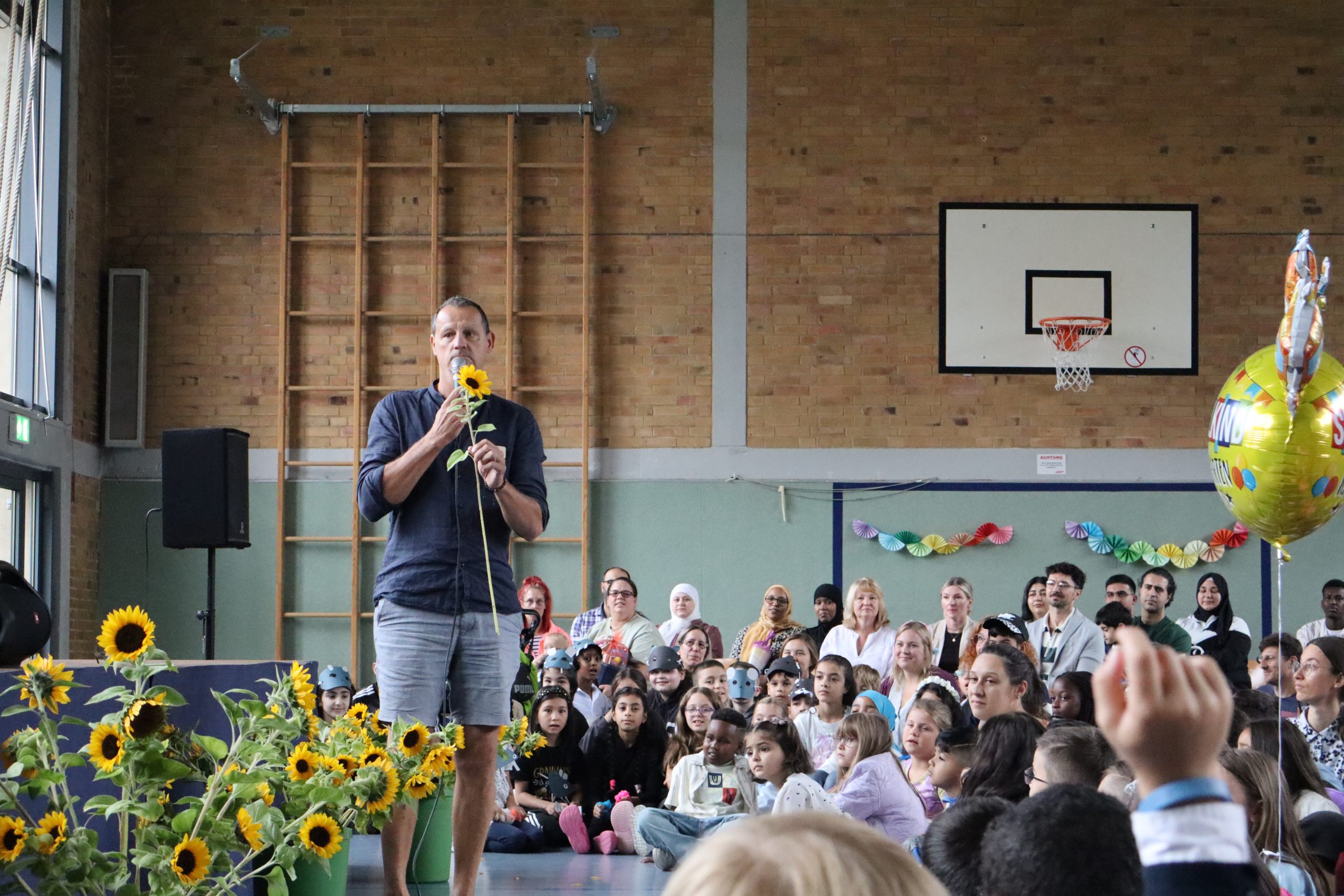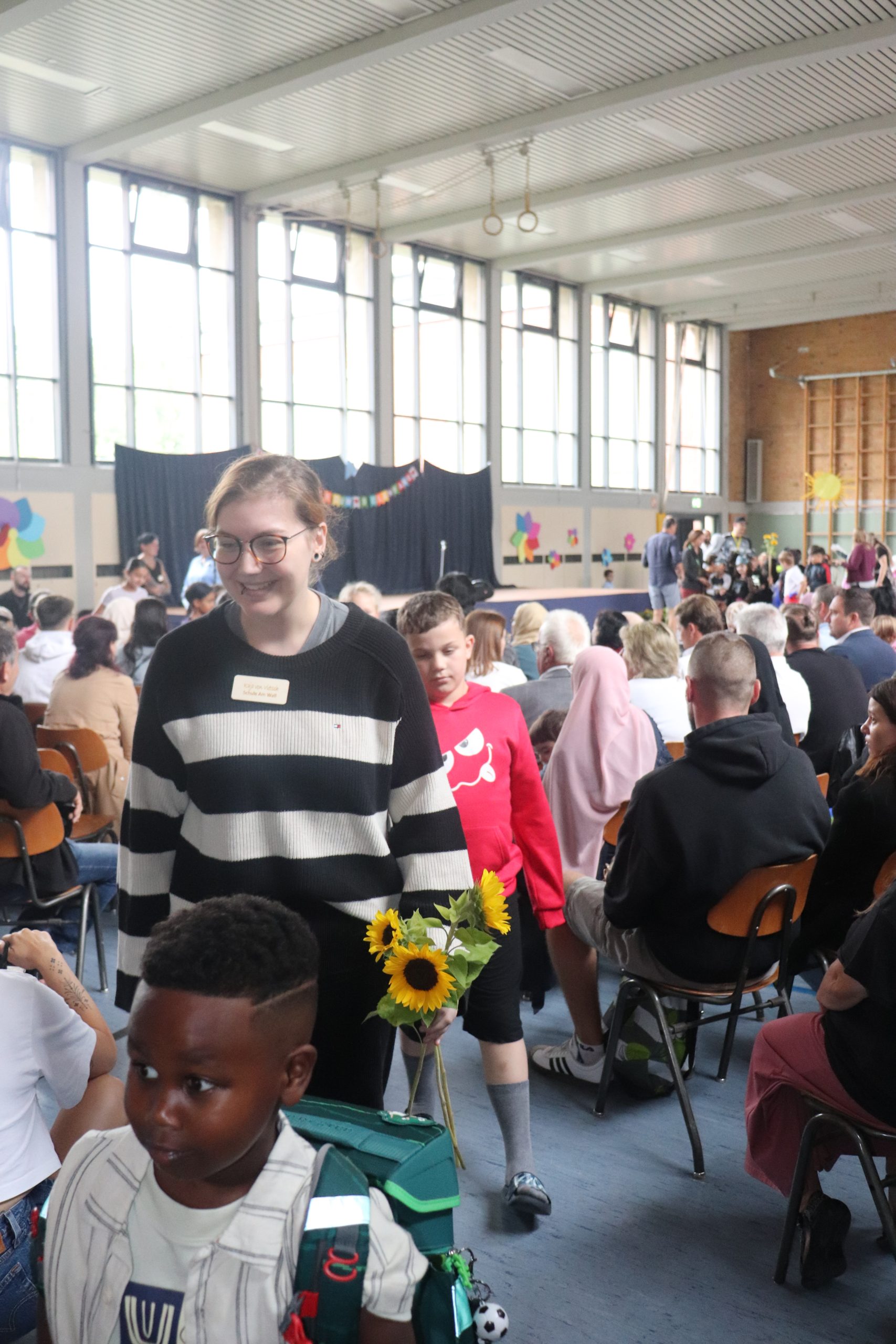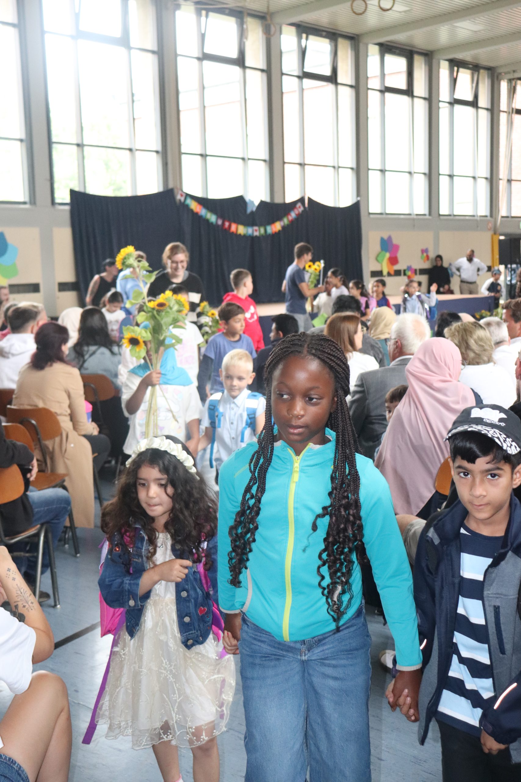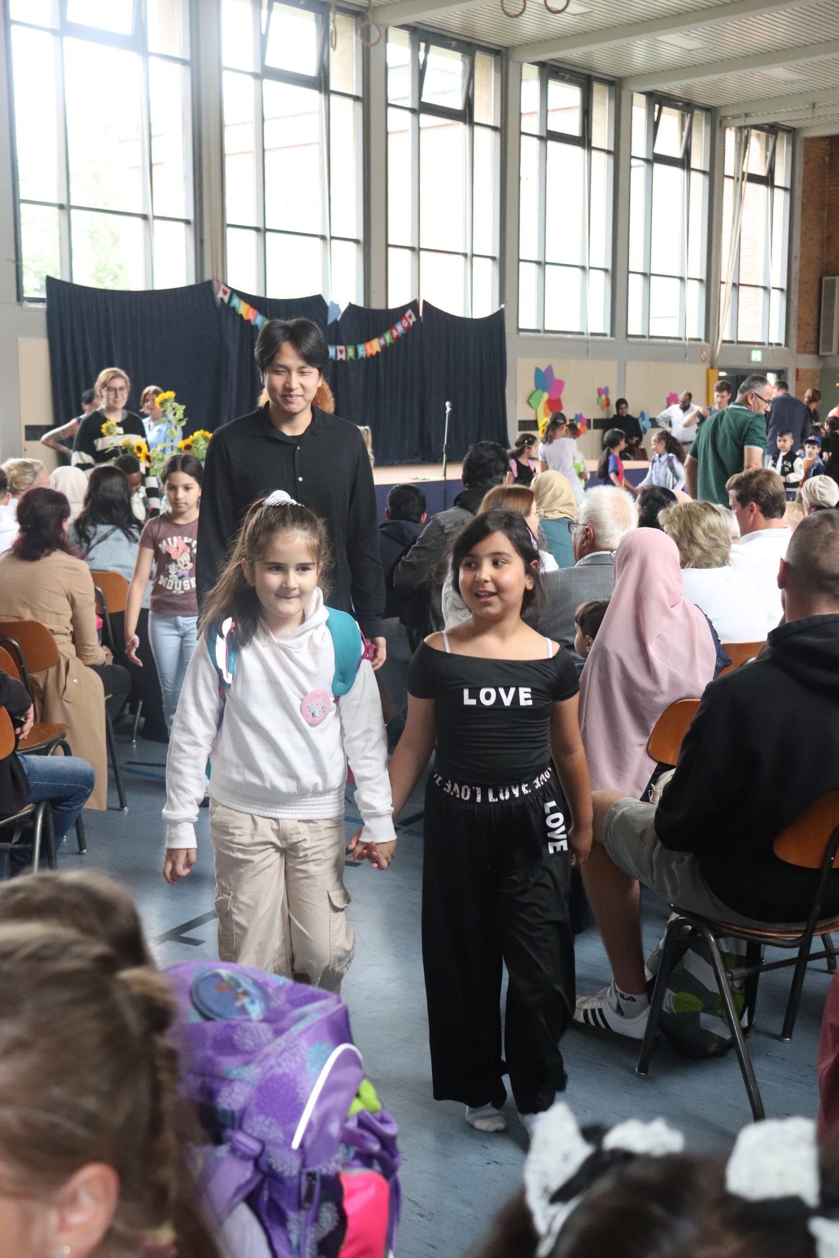 Am 20.08.2025 hat die Einschulung der neuen Erstklässlerinnen und Erstklässler in unserer Turnhalle stattgefunden. Die Luchseklasse hat ein kleines Theaterstück zu „Frederick“ von Leo Lionni aufgeführt. Mit diesem Bilderbuch beschäftigen sich alle Klassen der Schule Am Wall in den ersten zwei Wochen nach den Sommerferien und heißen die neuen Kinder der Schule damit herzlich willkommen.
