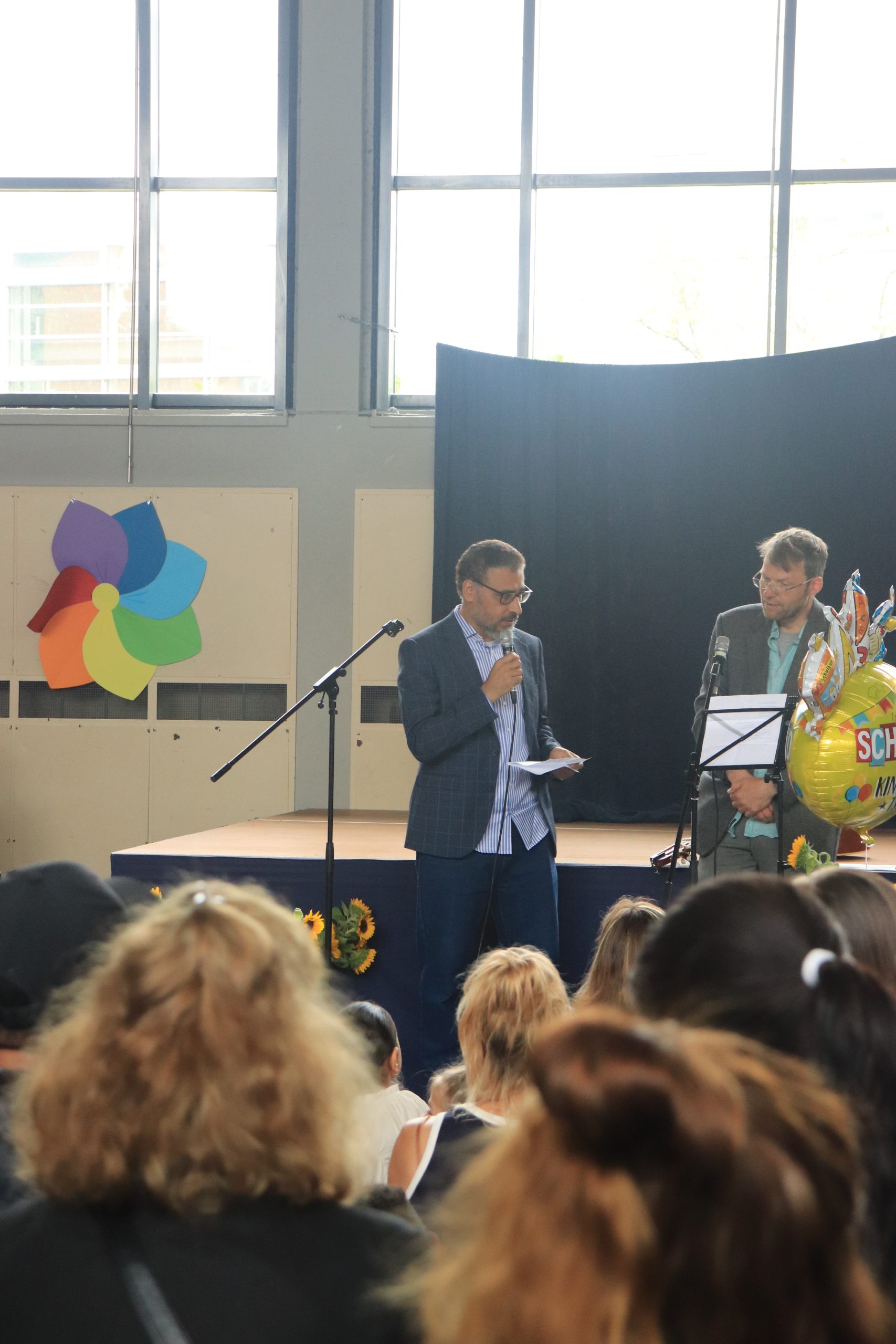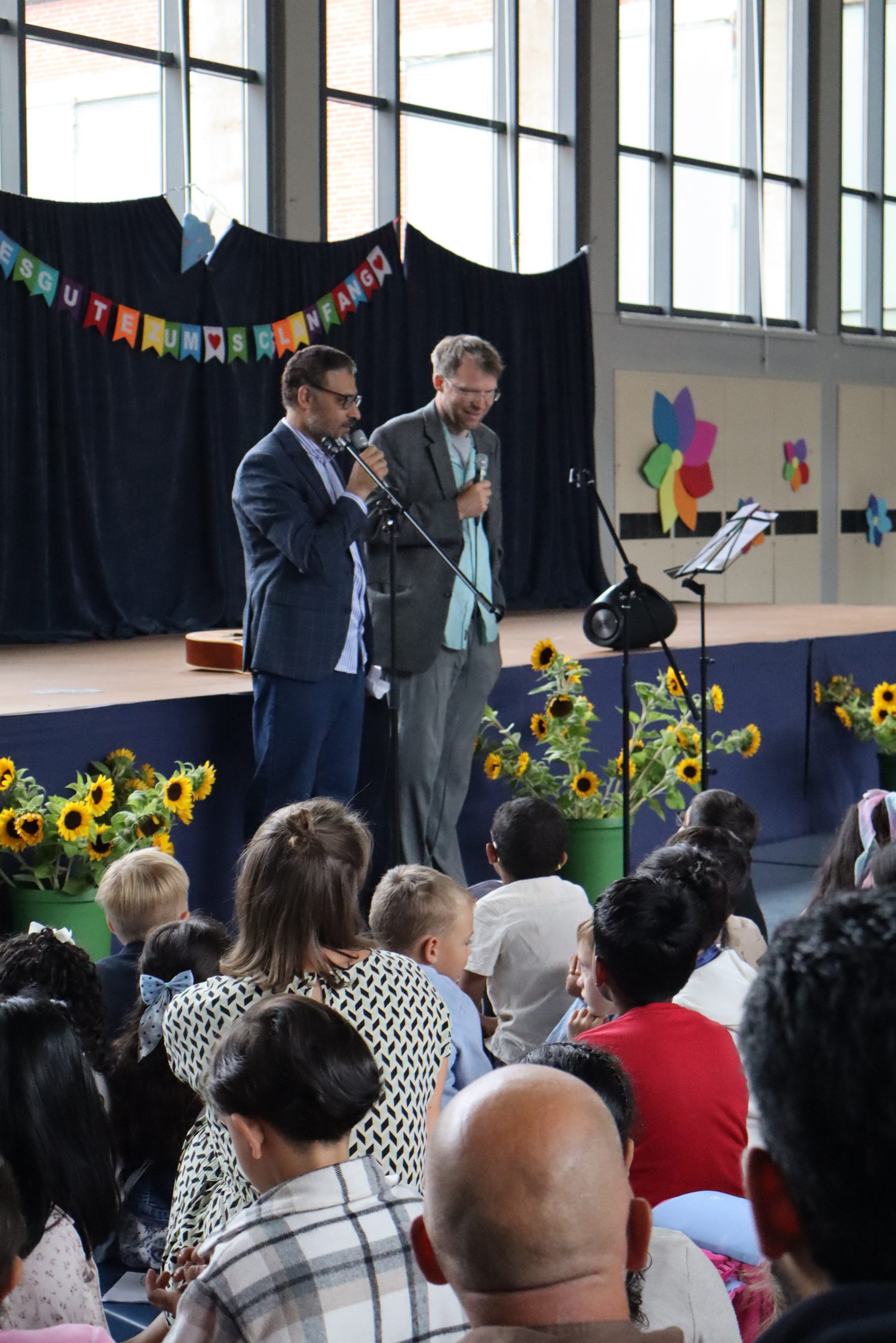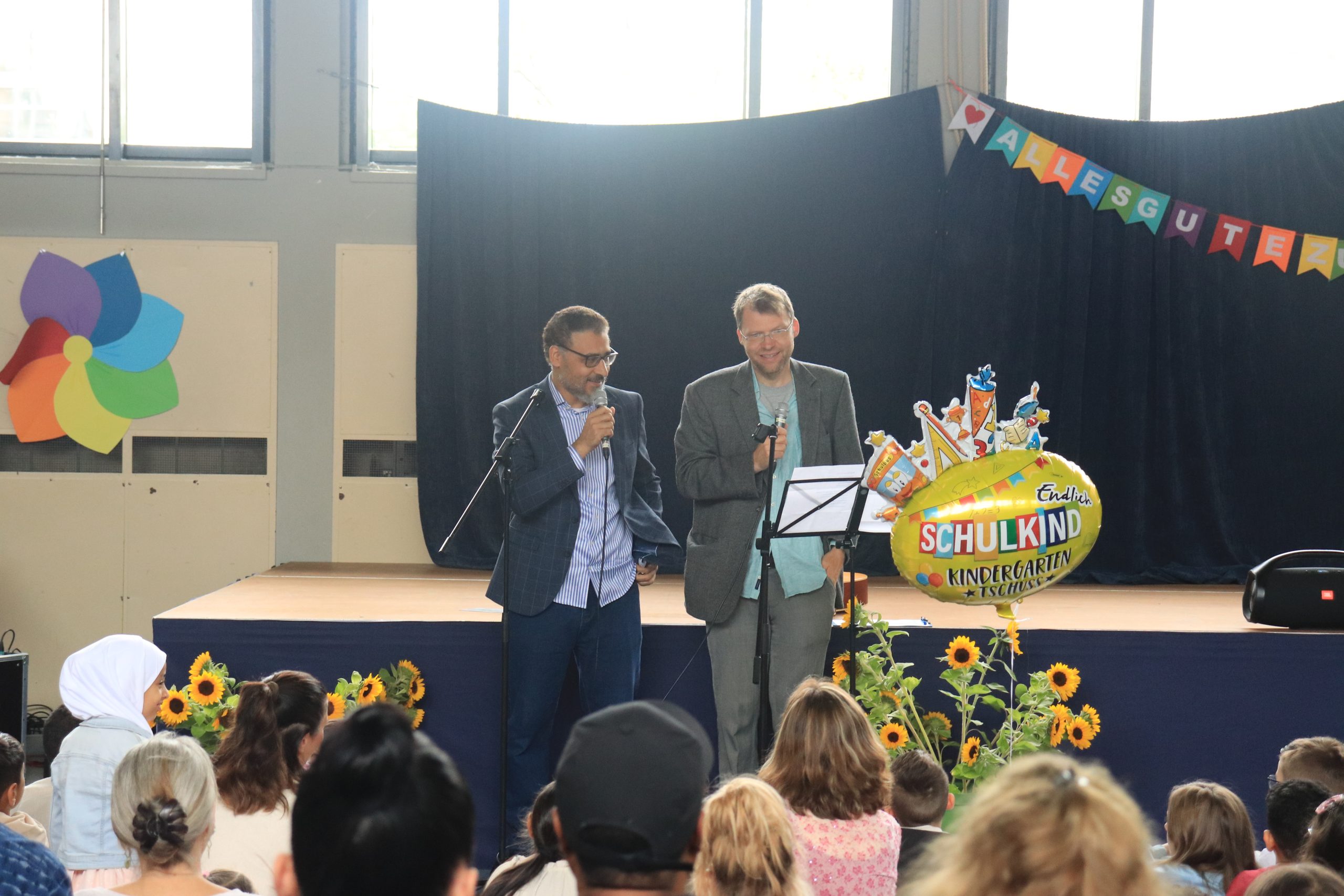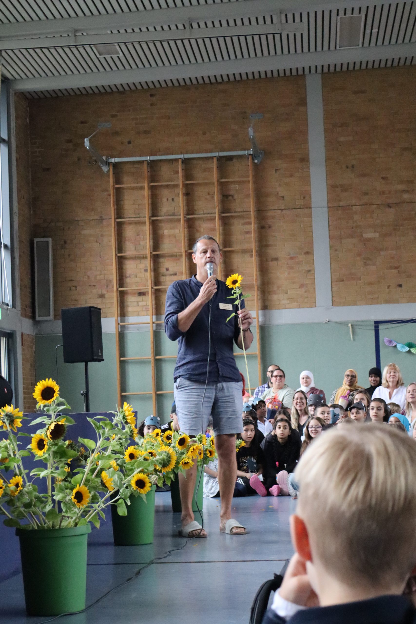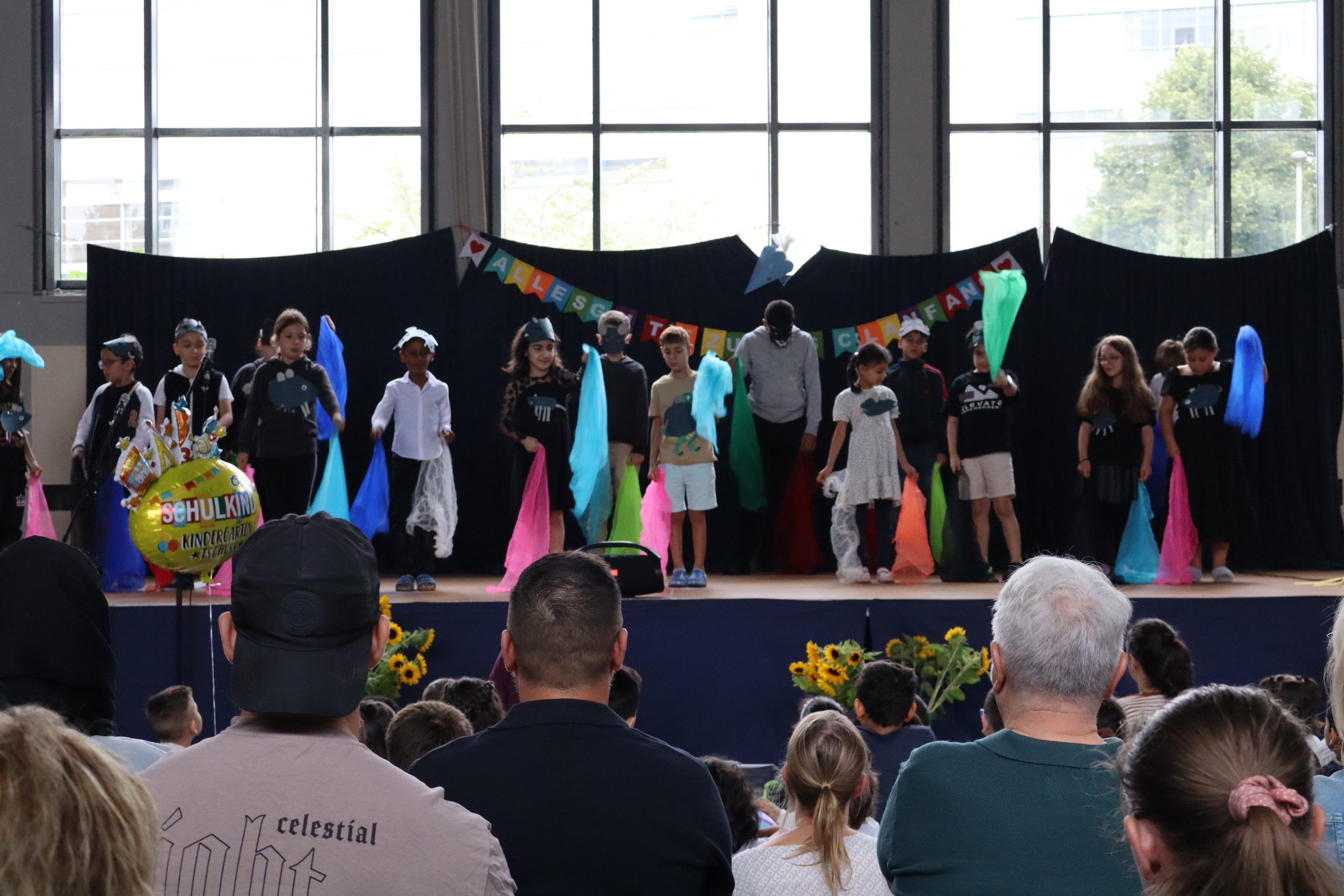 Am 20.08.2025 hat die Einschulung der neuen Erstklässlerinnen und Erstklässler in unserer Turnhalle stattgefunden. Die Luchseklasse hat ein kleines Theaterstück zu „Frederick“ von Leo Lionni aufgeführt. Mit diesem Bilderbuch beschäftigen sich alle Klassen der Schule Am Wall in den ersten zwei Wochen nach den Sommerferien und heißen die neuen Kinder der Schule damit herzlich willkommen.