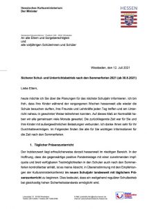 Bitte beachten Sie hierzu den beigefügten Elternbrief vom HKM: