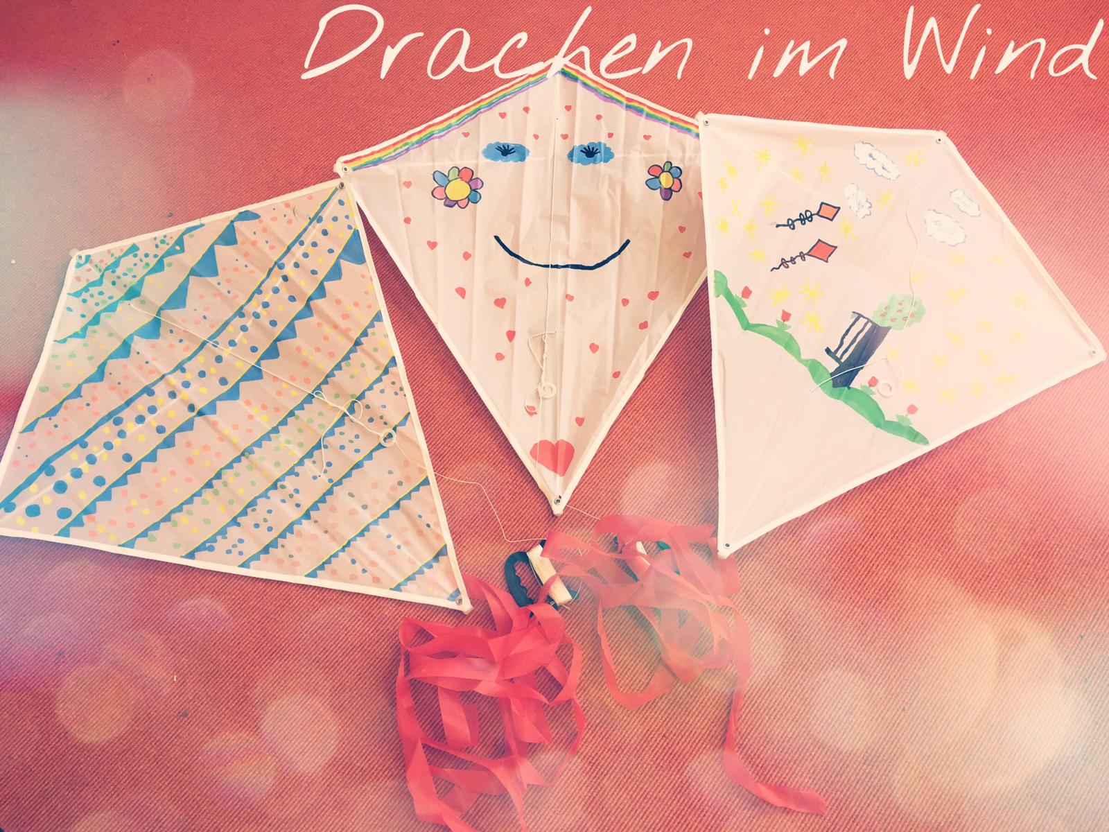 Die Bienen bastelten und gestalteten im Kunstunterricht wunderschöne Drachen und lernten dazu im Musikunterricht das Lied „Drachen im Wind“.