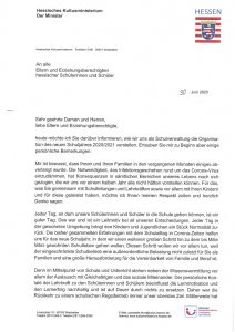 Elternbrief zum Schuljahresstart 2020